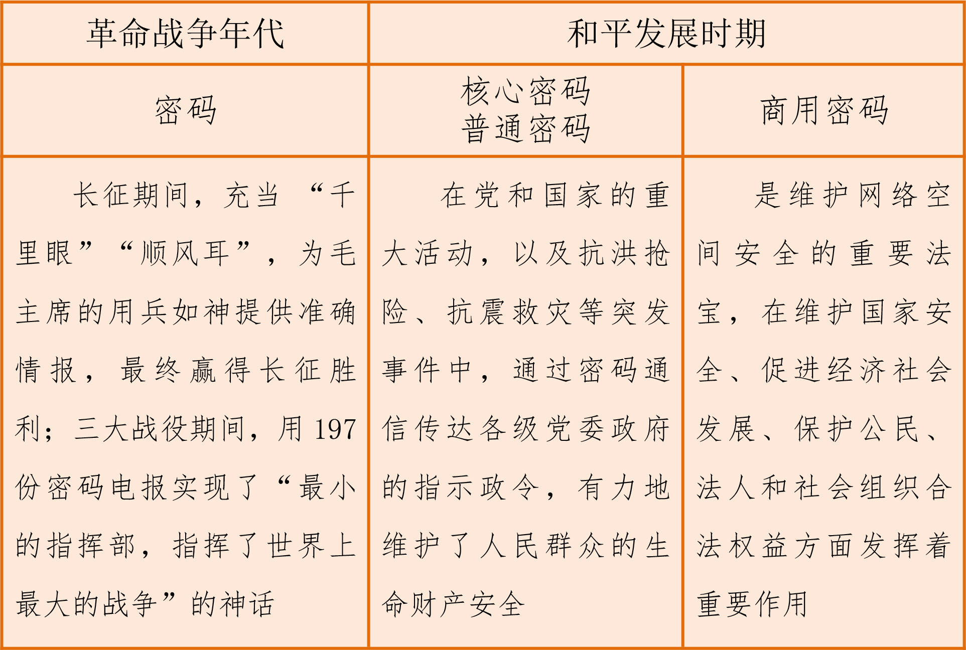 《密碼法》對(duì)核心密碼、普通密碼的科研、生產(chǎn)、服務(wù)、檢測(cè)、裝備、使用和銷毀等各個(gè)環(huán)節(jié)實(shí)行嚴(yán)格統(tǒng)一管理,確保絕對(duì)安全。