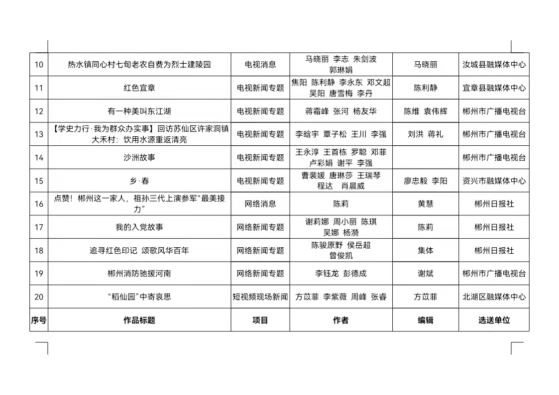 1.2021年度郴州市優(yōu)秀新聞工作者擬入選名單