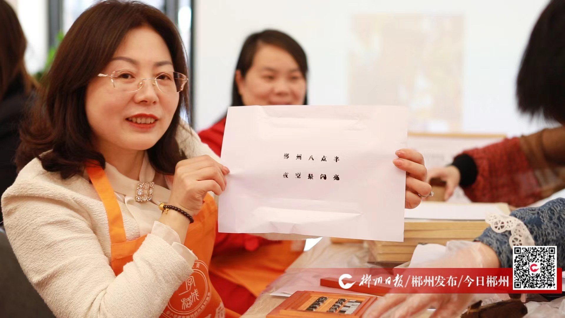 活動中,大家學習活字印刷術(shù)的起源和發(fā)展歷史,分工合作刷油墨、蓋紙、壓紙、裝裱,制作《愛蓮說》《郴州旅舍》《北湖水月》《叉魚詩》等印刷作品,排版制作“走遍五大洲 最美有郴州”“郴州八點半 夜空最閃亮”等旅發(fā)大會宣傳語等。大家還制作非遺手拓絲巾、開展手繪“自己”趣味簽到,拍攝愛蓮湖美景和活動集錦短視頻,在朋友圈、抖音、視頻號等進行宣傳,為郴州旅發(fā)大會打call、“安利”郴州,爭當最美郴州的宣傳員、推廣員。