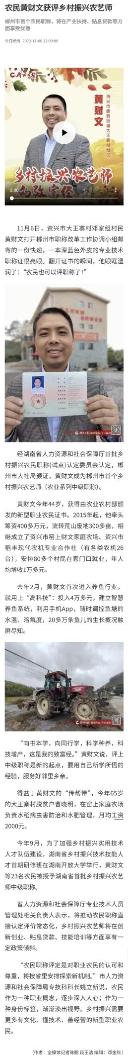 3.郴州日報+新媒體消息+農(nóng)民黃財文獲評鄉(xiāng)村振興農(nóng)藝師