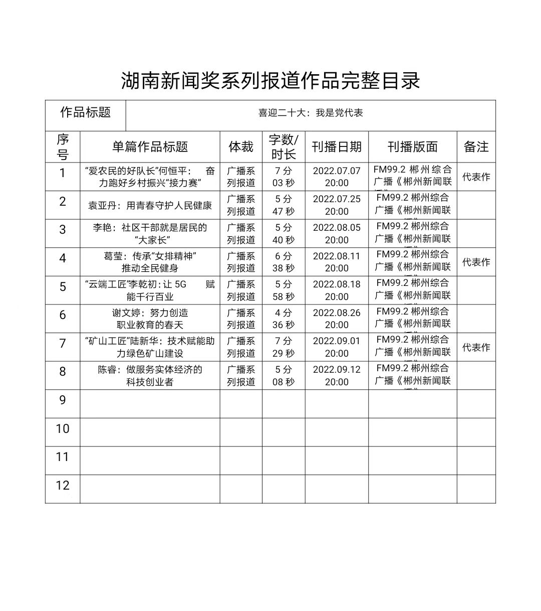 郴州市廣播電視臺12件湖南新聞獎報送作品目錄