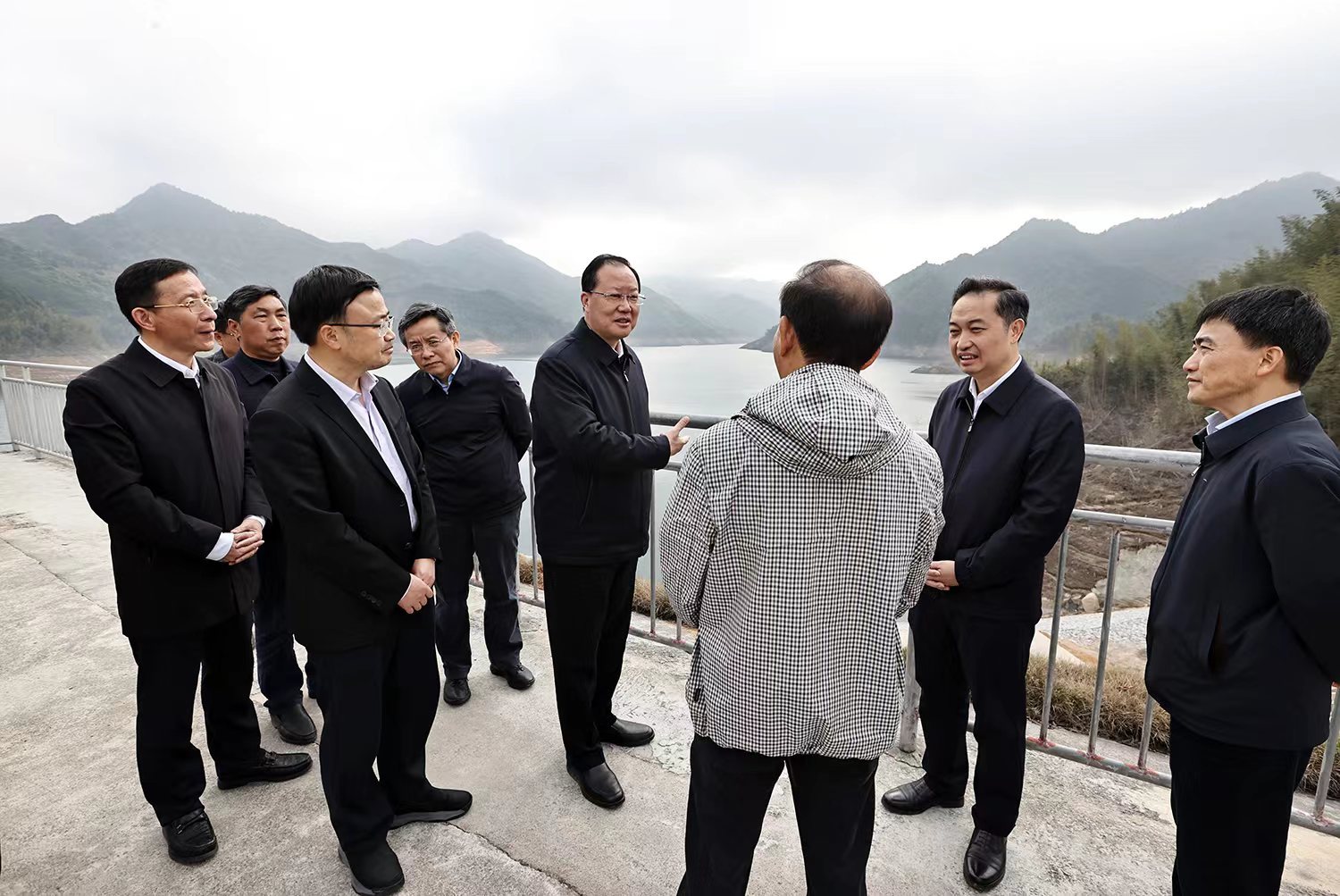 3月18日上午,毛偉明在宜章縣莽山水庫(kù)調(diào)研。湖南日?qǐng)?bào)全媒體記者 劉尚文 攝