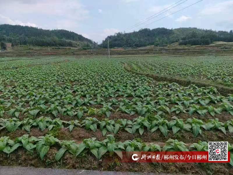 4月13日,在臨武縣武水鎮(zhèn)石橋村410畝烤煙基地,村民忙著中耕施肥,片片嫩綠的煙葉在風(fēng)中搖曳。