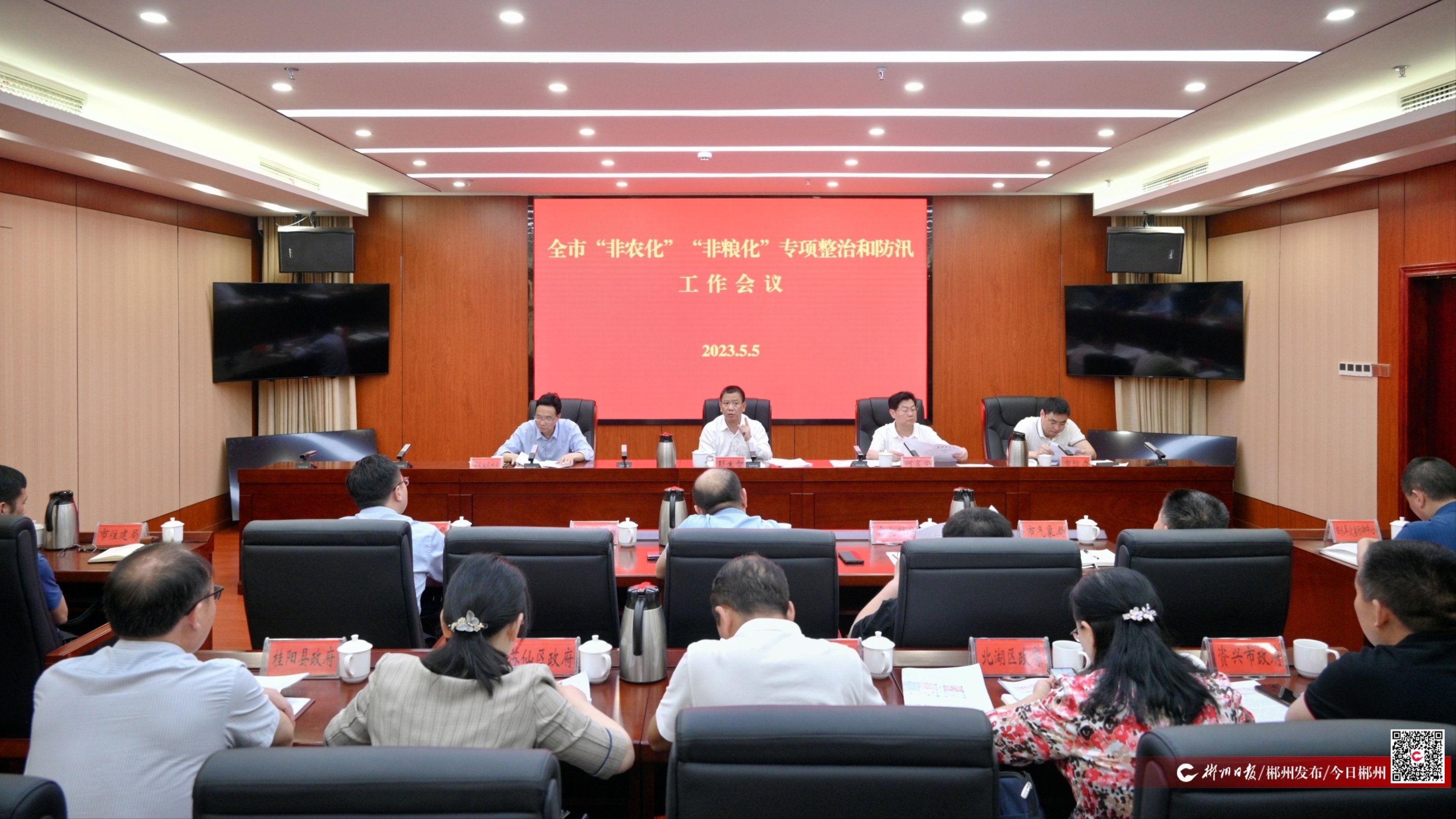 5月5日,全市“非農(nóng)化”“非糧化”專項(xiàng)整治和防汛工作會(huì)議召開(kāi),調(diào)度兩項(xiàng)專項(xiàng)整治工作,安排部署新一輪防汛工作。