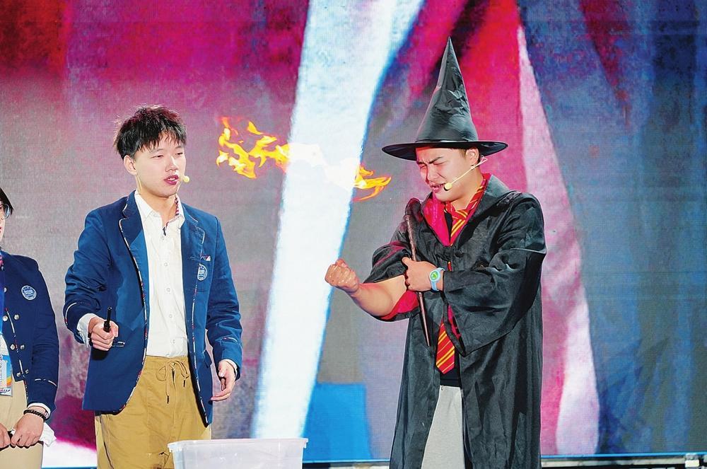 ▲湖南科學(xué)之夜晚場活動中,充滿互動性的“神奇實(shí)驗(yàn)秀”讓現(xiàn)場觀眾連連叫好。