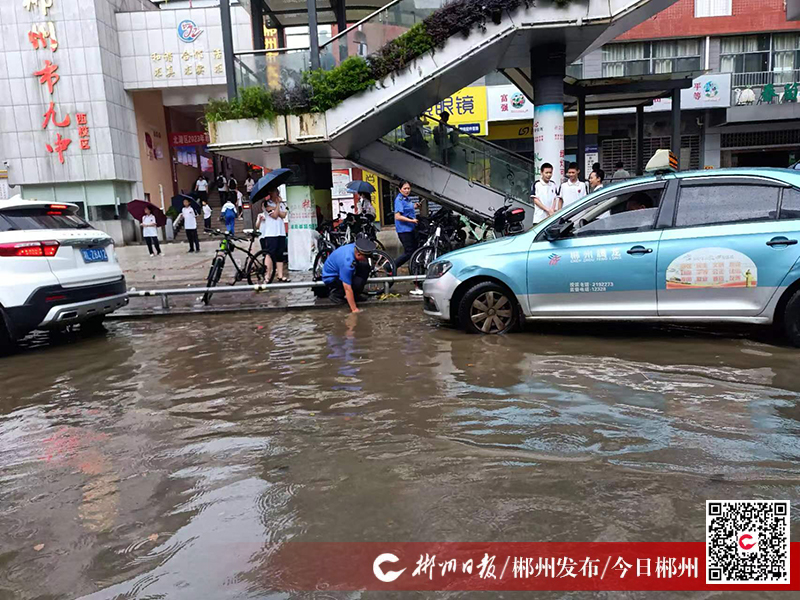 暴雨急驟,短時(shí)間內(nèi)的強(qiáng)降雨量形成多股雨水合流,地勢低洼路段因排水管道滿管,加之大風(fēng)吹落樹葉、樹枝堵塞雨水篦子致使排泄不暢等原因,造成城區(qū)部分路段出現(xiàn)不同程度積水。特別是燕泉北路與五里堆路交叉口、南嶺大道??祷▓@、南嶺大道廣電中心、郴江路與蘇仙南路交匯處等路段出現(xiàn)了短時(shí)較嚴(yán)重積水。