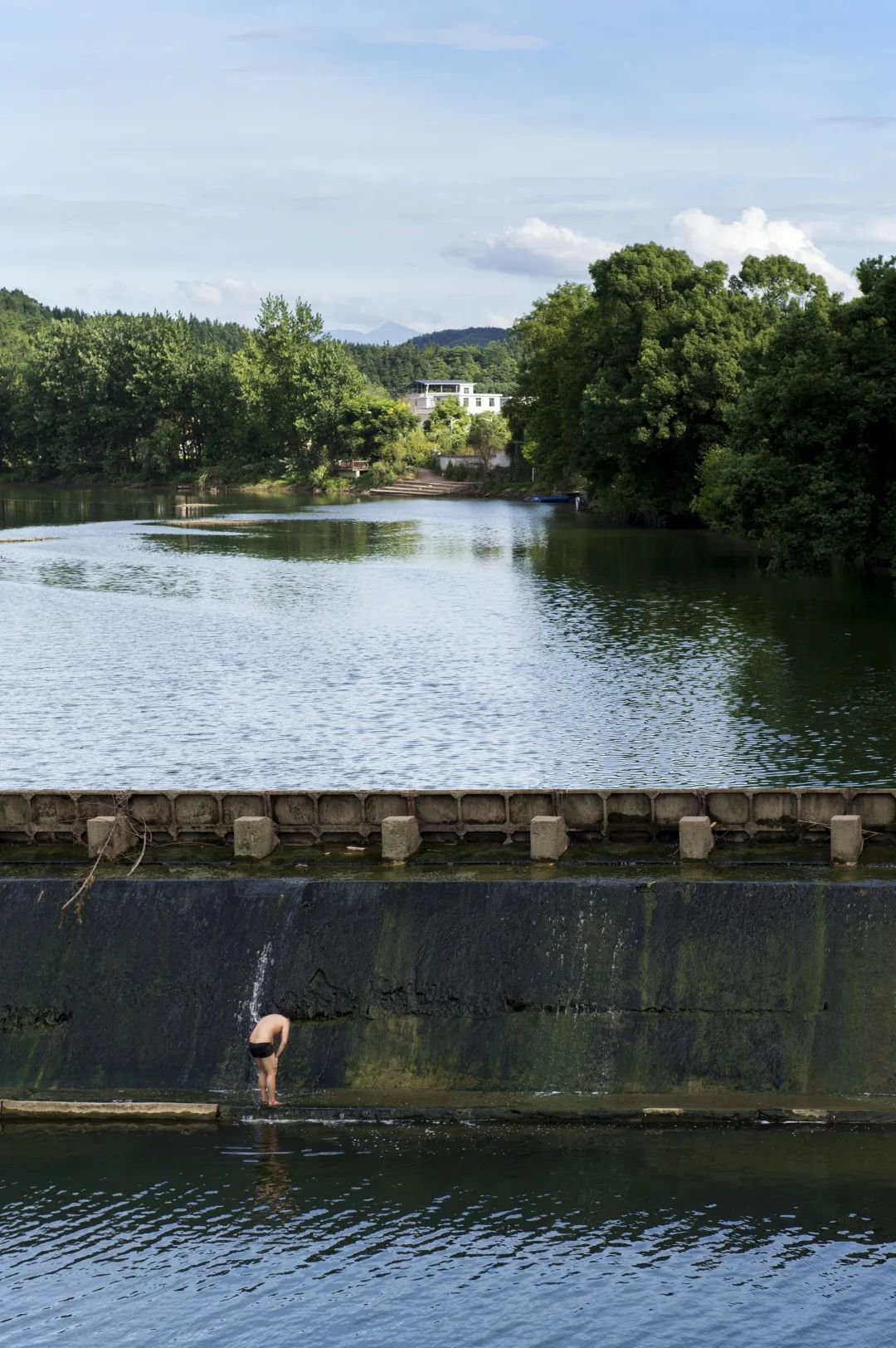黃昏日落,棲河里熱鬧起來,大人孩子在河里聚集。曹金忠拿起漁網(wǎng),到棲河去打魚?!艾F(xiàn)在河里野生鰱魚很少了,碰碰運(yùn)氣?!睅拙W(wǎng)撒下去,果然一無所獲。河對(duì)岸的古樸村莊燃起炊煙,農(nóng)戶開始制作米粉。寧靜祥和,一如百年前的模樣。