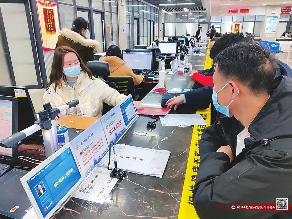 郴州市政務服務中心工作人員在為群眾辦理不動產(chǎn)登記