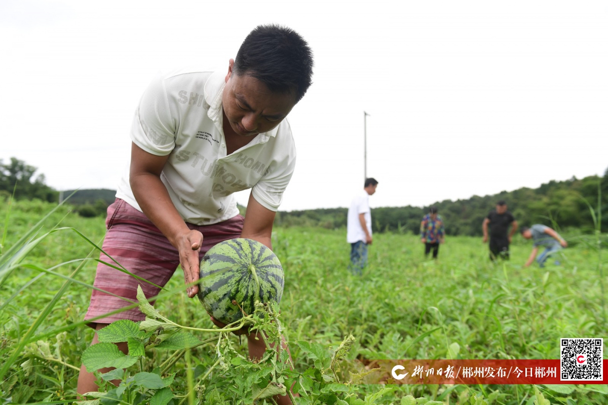 6月26日,蘇仙區(qū)飛天山鎮(zhèn)清江村的西瓜迎來了豐收季,種植戶曹旭華和村民忙著采摘西瓜供應(yīng)市場(chǎng)。