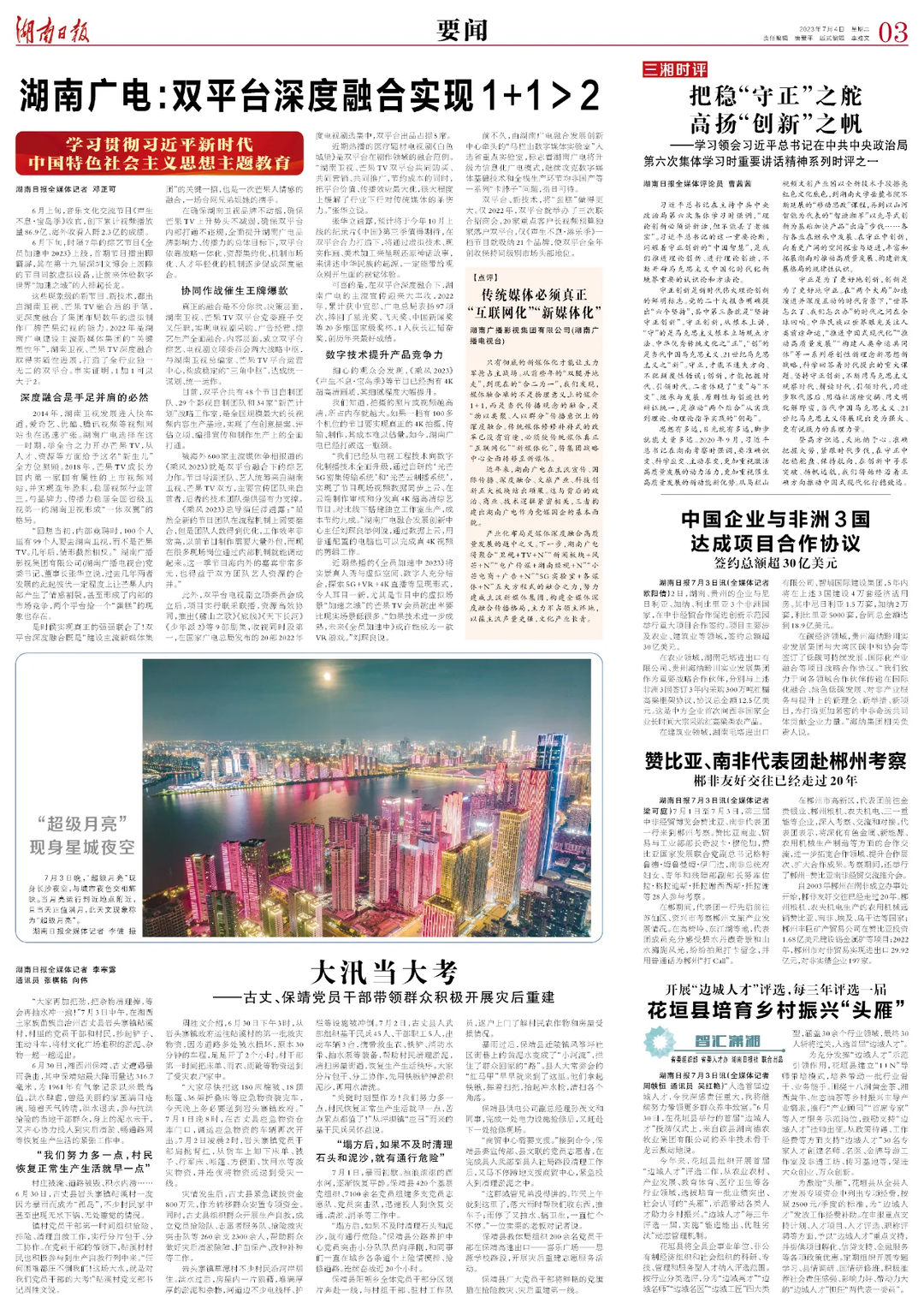 近年來,湖南廣電在主流宣傳、國際傳播、深度融合、文旅產(chǎn)業(yè)、科技創(chuàng)新五大板塊結(jié)出碩果。這與背后的政治、商業(yè)、技術(shù)邏輯緊密相關(guān),三者構(gòu)建出湖南廣電作為黨媒國企的基本面貌。