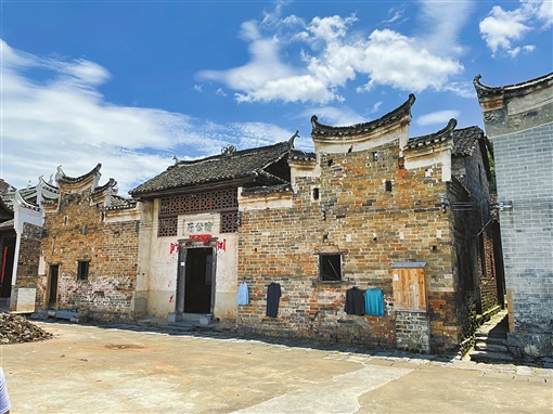 板梁有上村、中村、下村三座村子,最熱鬧時有八千多村民居住。每個村落都建有宗祠,三大古祠村前排列,背靠象嶺平展延伸,依山就勢,古驛道穿村而過通兩廣。宗祠內(nèi)建有亭堂、戲臺、天井,祠堂前面都建有一池荷塘,靠山依水,風生水起,自然就有好風水。各村都有幾眼泉水圍繞古村流淌,它們發(fā)源于山背的蓮花石,慢慢匯集成了一股韻泉,流向村落,流向了九山河。
