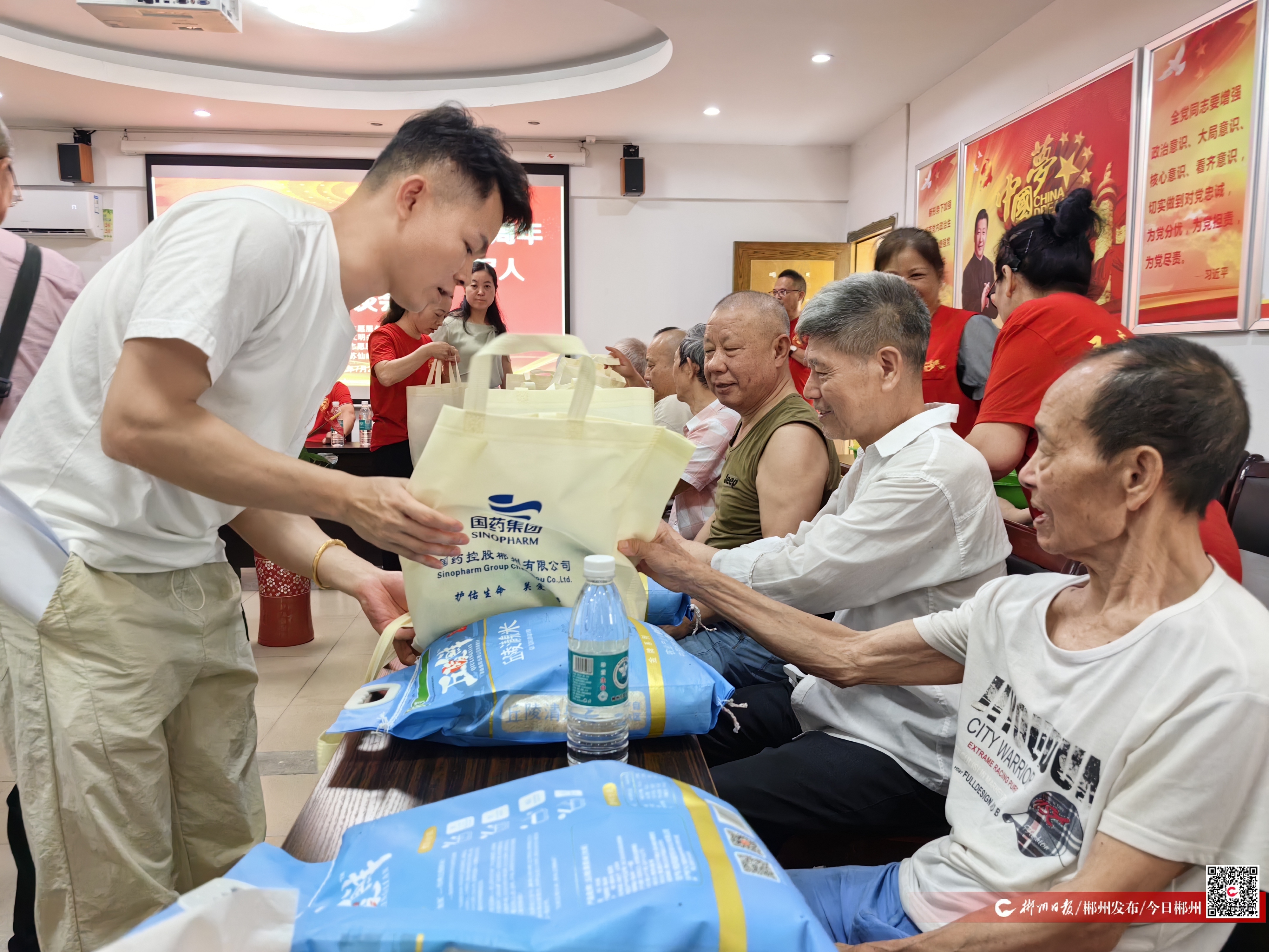 座談會(huì)結(jié)束后,志愿者們?yōu)橥宋槔媳蜕狭宋繂栁镔Y并向他們表達(dá)了節(jié)日的祝賀。
