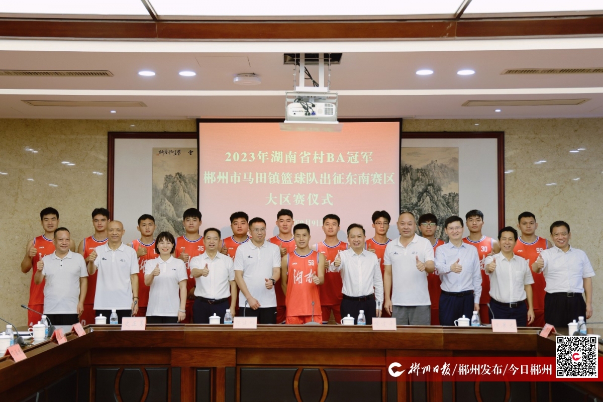 9月9日,2023年湖南省村BA冠軍郴州市馬田鎮(zhèn)籃球隊從郴州出征東南賽區(qū)大區(qū)賽,市委書記吳巨培,市委副書記、市長闞保勇為隊員送行,向球隊贈送紀(jì)念品。