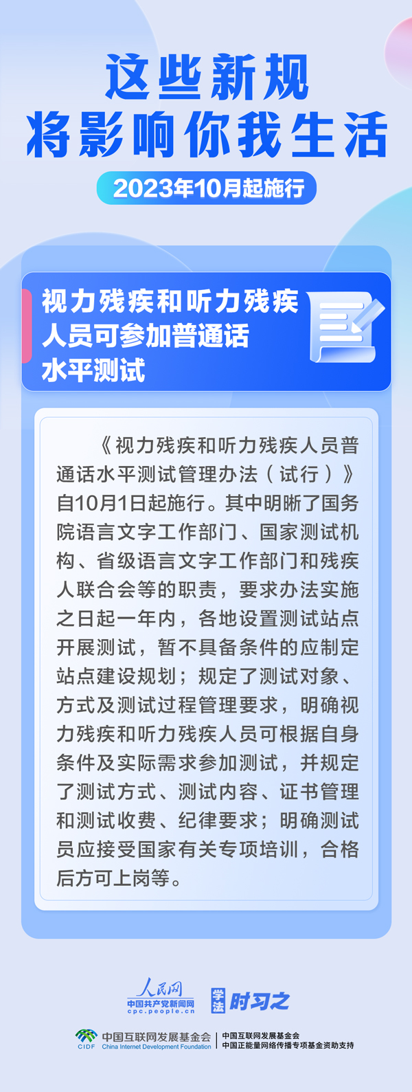預(yù)防和制止假冒國企央企等違法行為;加強(qiáng)校外培訓(xùn)監(jiān)管;視力殘疾和聽力殘疾人員可參加普通話水平測試……10月,這些新規(guī)施行,將影響你我生活。