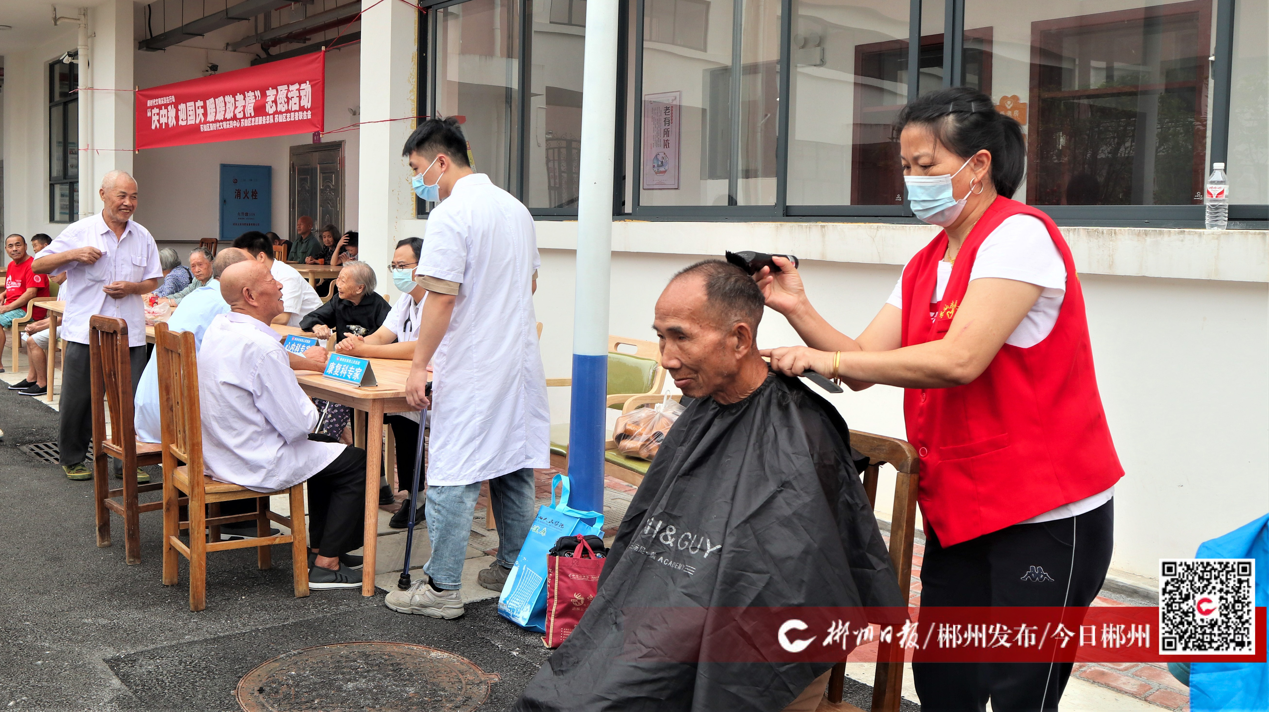 活動(dòng)中,愛心人士與老人拉家常、問冷暖,詳細(xì)了解他們的日常生活和身體狀況,為他們洗頭、理發(fā)、剃胡須……在愛心義診臺(tái),醫(yī)護(hù)志愿者細(xì)致入微地為老人們量血壓、查心率,鼓勵(lì)老人多鍛煉身體,保持良好心態(tài)。文藝志愿者們,為老人們現(xiàn)場(chǎng)表演豐富多彩的文藝節(jié)目,提前為老人們送上節(jié)日的祝福。愛心企業(yè)帶來的烤鴨、月餅、牛奶等中秋大禮包,更讓敬老院的院子里充滿笑容與溫情。