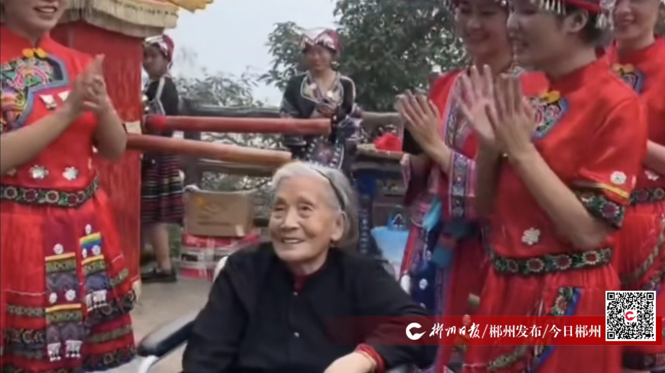 莽山五指峰景區(qū)為這個愛意滿滿的大家庭開了觀景綠色通道,提供全程無障礙服務(wù)?,幾遐s山節(jié)、瑤族經(jīng)典舞蹈、高山流水、情歌對唱、瑤族迎親等活動讓老人笑靨如花,工作人員與老人家人共唱生日快樂歌,歡聲笑語在山間回蕩。