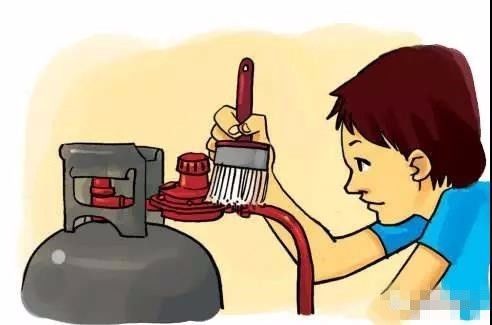 4)查找燃?xì)庑孤c(diǎn):檢查時(shí),可用肥皂水涂在可能產(chǎn)生漏氣的地方,如膠管與減壓閥和燃?xì)庠罹哌B接處,若有漏氣,則該處會連續(xù)冒泡。