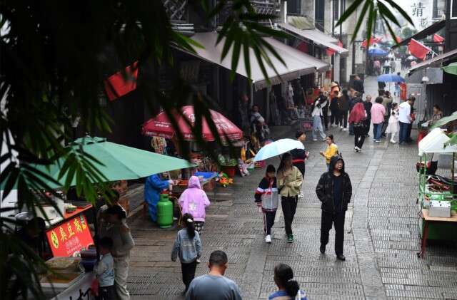 (近日,長(zhǎng)沙降溫明顯,靖港古鎮(zhèn)上的行人紛紛穿上了外套。湖南日?qǐng)?bào)全媒體記者 田超 攝)