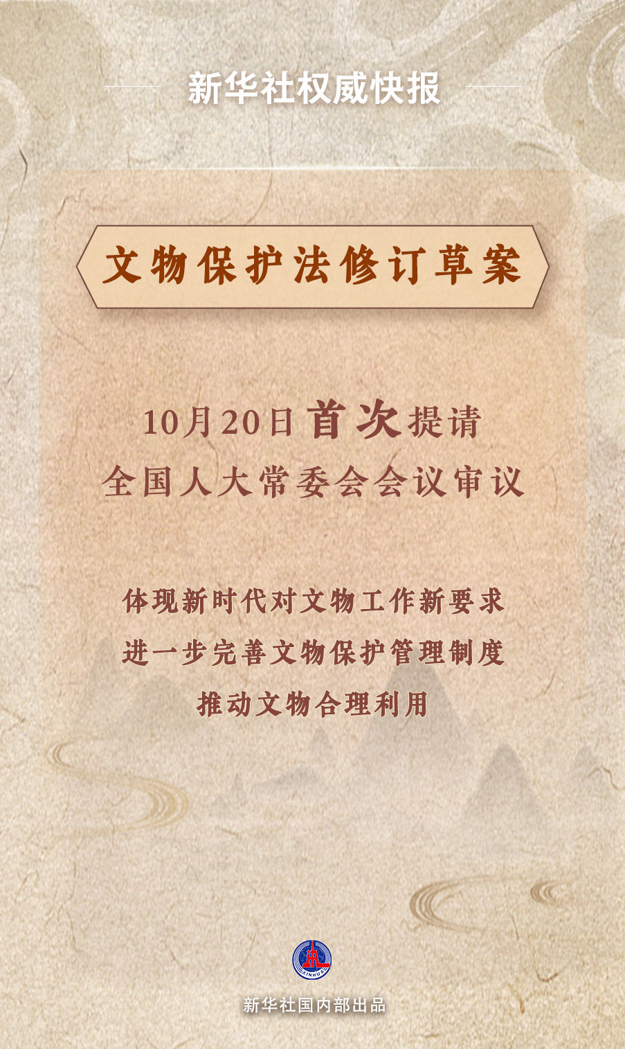 10月20日,文物保護(hù)法修訂草案提請(qǐng)十四屆全國(guó)人大常委會(huì)第六次會(huì)議首次審議。修訂草案貫徹黨中央決策部署,體現(xiàn)新時(shí)代對(duì)文物工作新要求;堅(jiān)持把保護(hù)放在第一位,進(jìn)一步完善文物保護(hù)管理制度;妥善處理保護(hù)和利用的關(guān)系,推動(dòng)文物合理利用;多措并舉加大處罰力度,嚴(yán)厲打擊破壞文物違法行為。