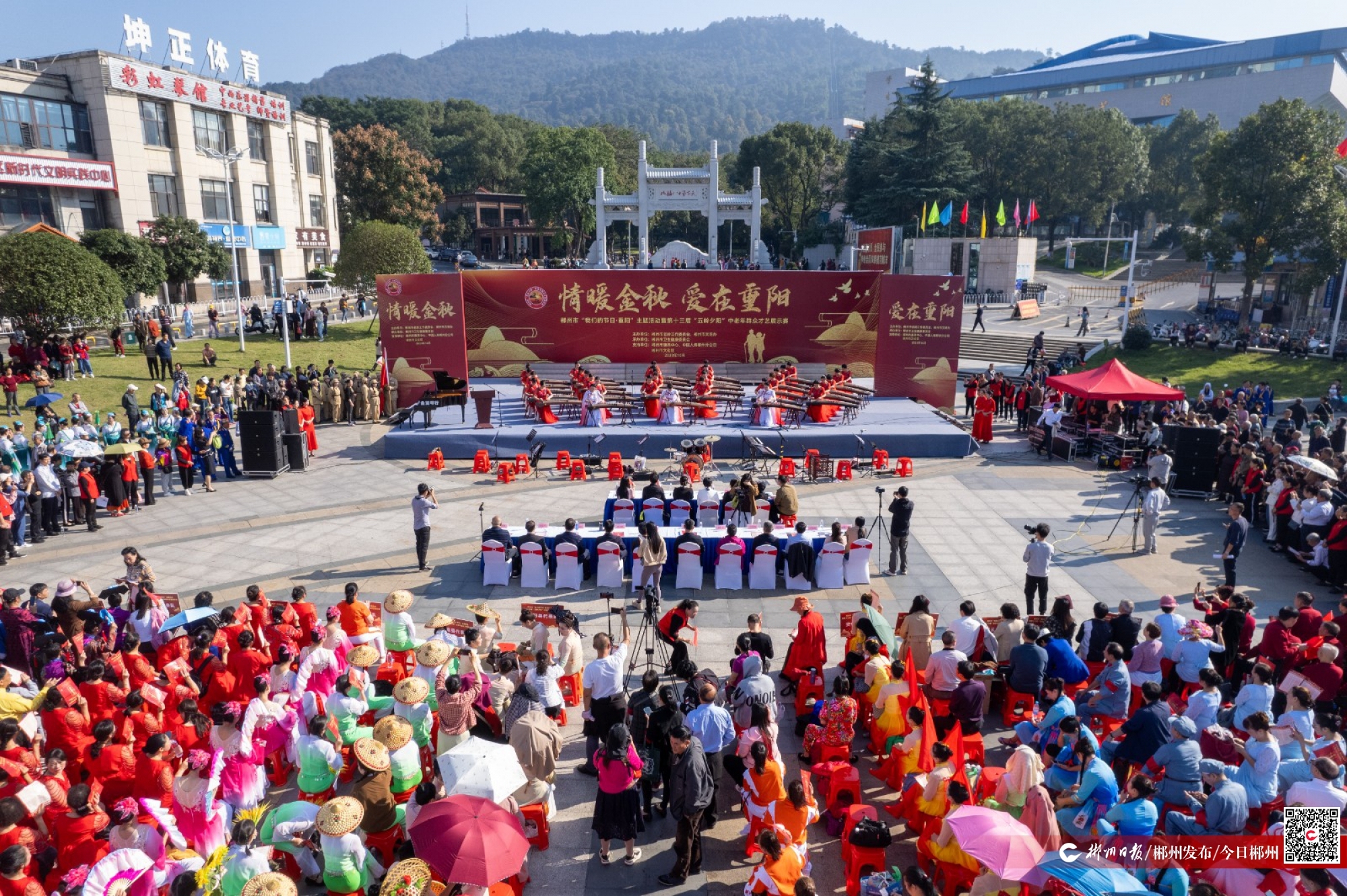 10月23日,“情暖金秋·愛(ài)在重陽(yáng)”郴州市“我們的節(jié)日·重陽(yáng)”暨第十三屆“五嶺夕陽(yáng)”中老年群眾才藝展示賽活動(dòng)在蘇仙福地廣場(chǎng)舉行。