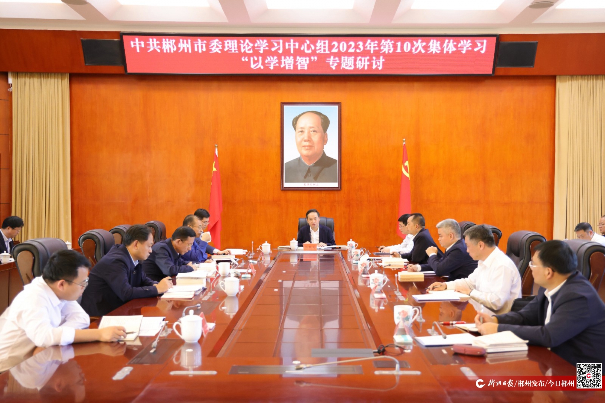 10月23日,中共郴州市委理論學(xué)習(xí)中心組開展2023年第10次集體學(xué)習(xí),重點研讀《習(xí)近平新時代中國特色社會主義思想學(xué)習(xí)綱要(2023年版)》、《習(xí)近平新時代中國特色社會主義思想的世界觀和方法論專題摘編》,并圍繞“以學(xué)增智”這一主題開展專題研討。市委書記吳巨培主持并作總結(jié)講話,省委第十巡回督導(dǎo)組副組長胡國雄和督導(dǎo)組有關(guān)同志到會指導(dǎo),市委副書記、市長闞保勇,市政協(xié)主席陳躍文作交流發(fā)言。