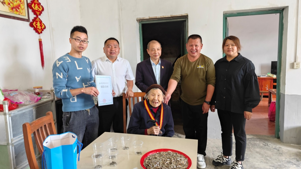 慰問組一行前往三洞村百歲老人家中慰問,并進(jìn)行了親切交談。中國人壽桂東支公司經(jīng)理郭謙農(nóng)代表公司為百歲老人送上量身定制的銀質(zhì)紀(jì)念章和一份老年人意外傷害保險,并祝愿老人身體健康,家庭幸福。