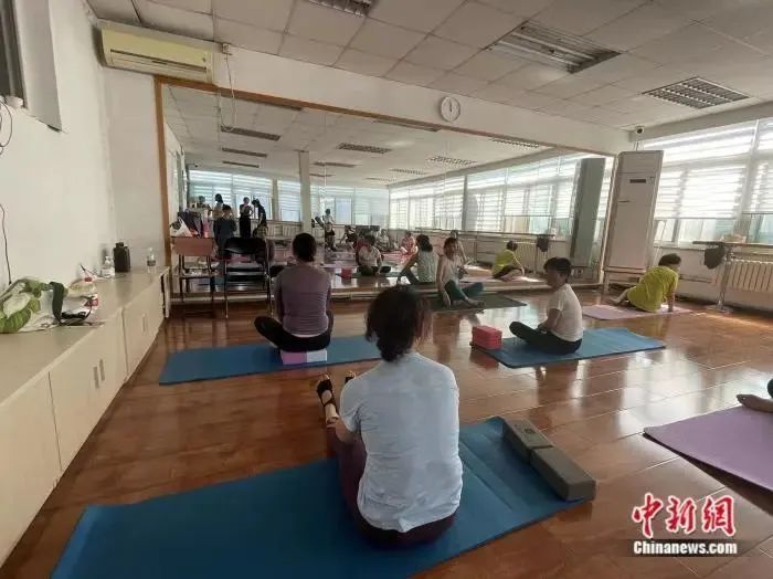 27歲的鐘詩琪所報(bào)名的老年大學(xué)瑜伽課課堂。受訪者供圖