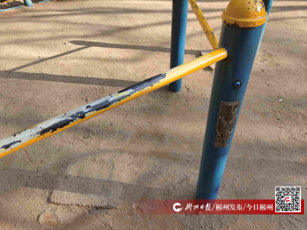 1月8日,記者來到蘇仙嶺景區(qū)健身廣場(chǎng)看到,大部分健身設(shè)施由于常年風(fēng)吹日曬、頻繁使用且缺乏有效的管理和維護(hù),存在外部油漆脫落、腐蝕生銹、零配件缺失、未設(shè)置使用說明和健身須知告示牌、“超齡”運(yùn)行等問題,嚴(yán)重影響市民正常使用,極易對(duì)使用設(shè)施的市民特別是老年人及兒童造成人身?yè)p害。除了建設(shè)設(shè)施,砂石裸露、地面坑洼的場(chǎng)地也存在較大的安全隱患。
