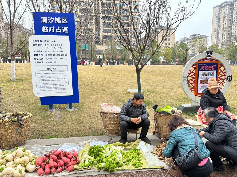 去年4月以來,南川區(qū)探索在小區(qū)周邊等區(qū)域設(shè)立“潮汐攤區(qū)”,目前已設(shè)置攤區(qū)31處、攤位2100余個(gè),引導(dǎo)瓜果農(nóng)、流動(dòng)菜農(nóng)、經(jīng)營攤販免費(fèi)入位規(guī)范經(jīng)營,實(shí)行“攤位+攤主自治”模式,早中晚定時(shí)、規(guī)范定點(diǎn)、統(tǒng)一管理?!斑@讓居民在家門口就能吃上新鮮瓜果蔬菜,也有助于規(guī)范流動(dòng)攤販管理?!蹦洗▍^(qū)城市管理局局長姚濤說。