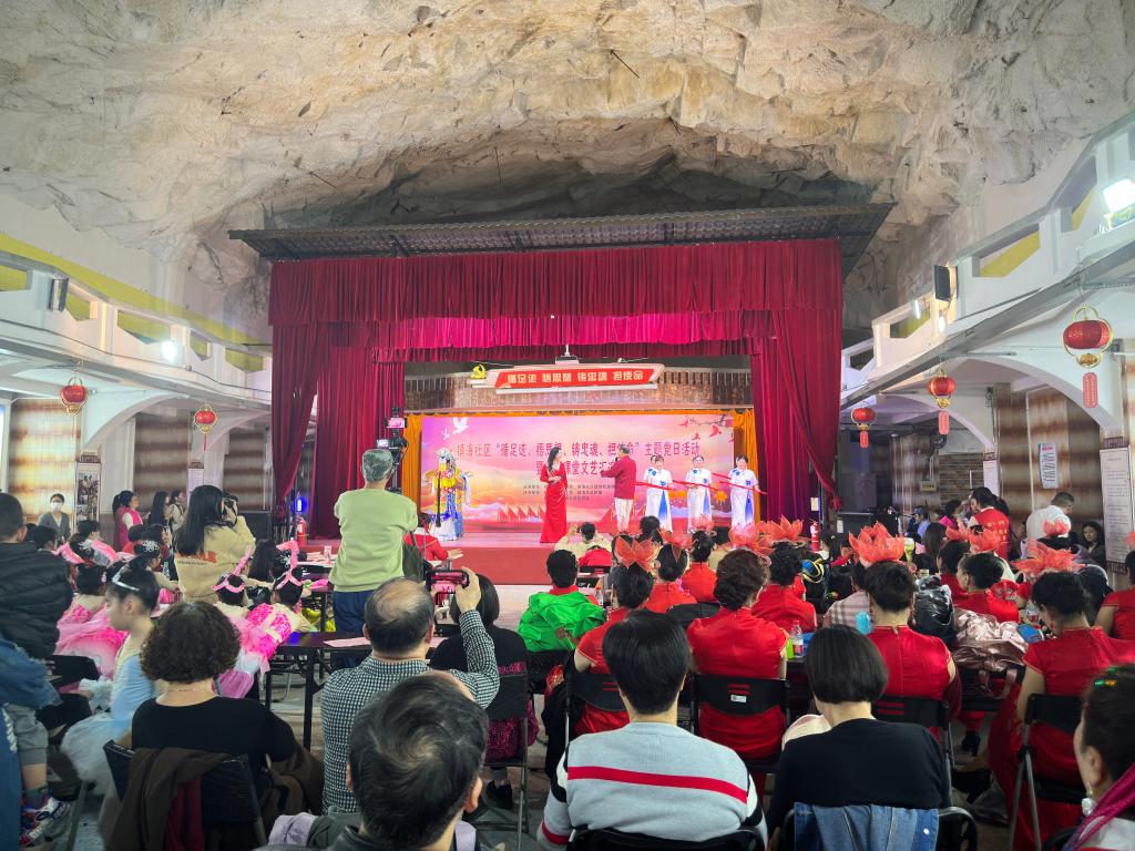 廈門思明區(qū)鎮(zhèn)海社區(qū)在鴻山人防隧道活動(dòng)空間舉辦的近鄰課堂文藝匯演(2024年1月6日攝)。新華社記者付敏 攝
