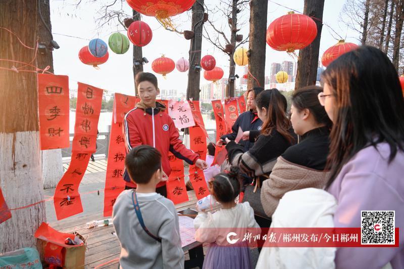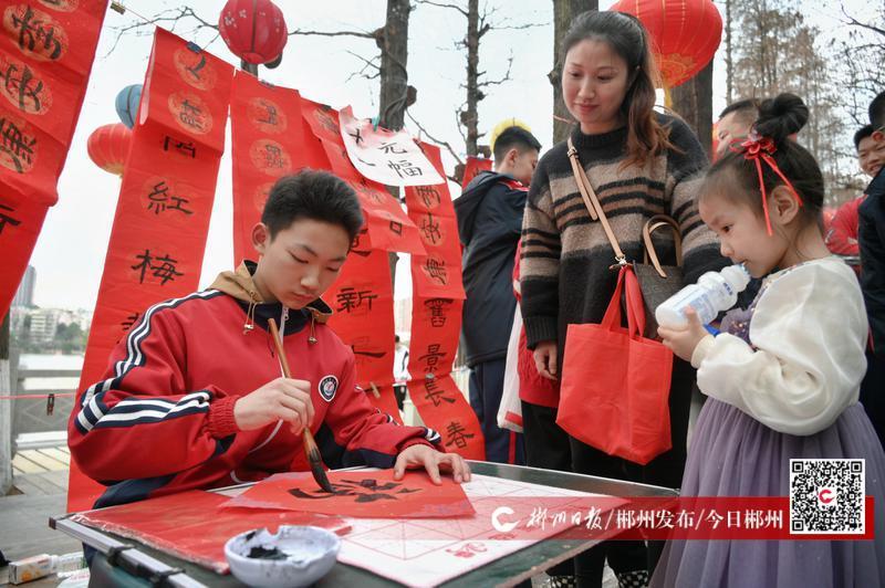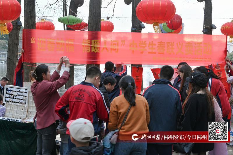 迎春納福,情暖人間。1月31日下午,郴州市第六中學(xué)的學(xué)生在北湖公園開(kāi)展春聯(lián)義賣(mài)活動(dòng)?;顒?dòng)中,同學(xué)們現(xiàn)場(chǎng)揮毫潑墨,“平安喜樂(lè)、招財(cái)進(jìn)寶、瑞氣盈門(mén)......”雋秀飄逸的書(shū)法,吸引眾多市民駐足觀看。在得知義賣(mài)款將悉數(shù)捐贈(zèng)給北湖區(qū)福利院,作為“愛(ài)心壓歲錢(qián)”幫助孩子們溫暖過(guò)節(jié)后,市民紛紛為同學(xué)們點(diǎn)贊并慷慨解囊。