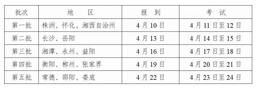 考試具體批次與時間如下: