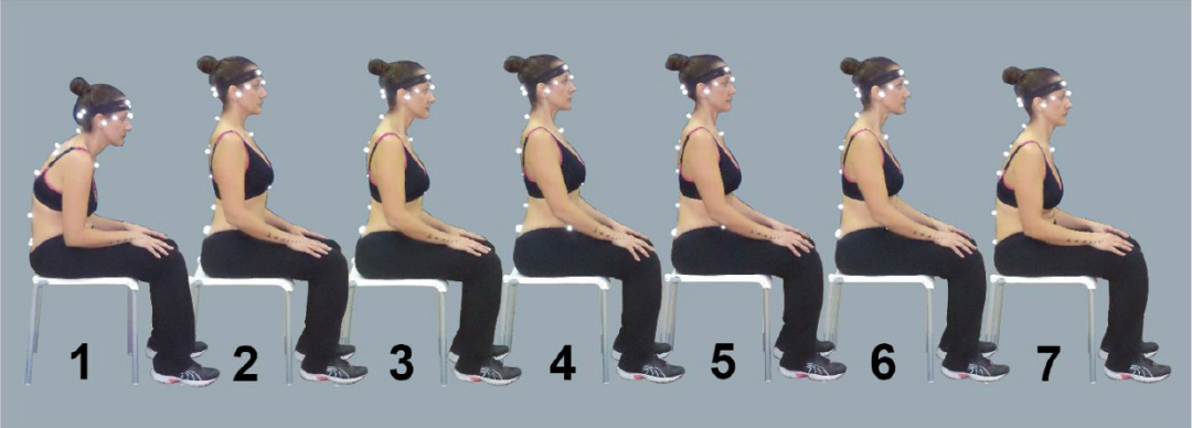 讓我們先來做個測試,這張圖片出自一項“物理治療師對最佳坐姿和站立姿勢的認知”的研究。你認為正確的坐姿是幾號?