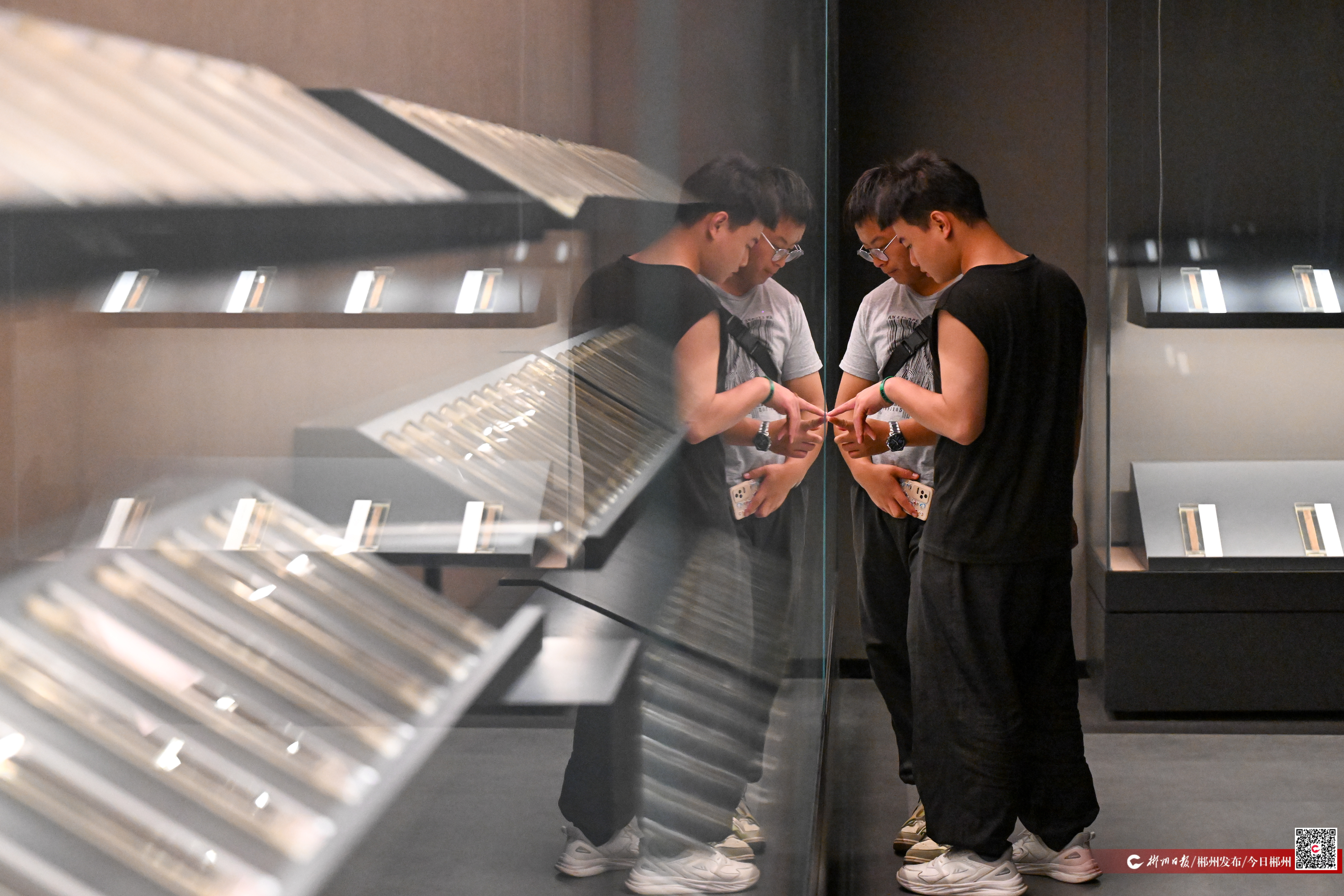 市民在參觀郴州市博物館新館西晉簡(jiǎn)牘