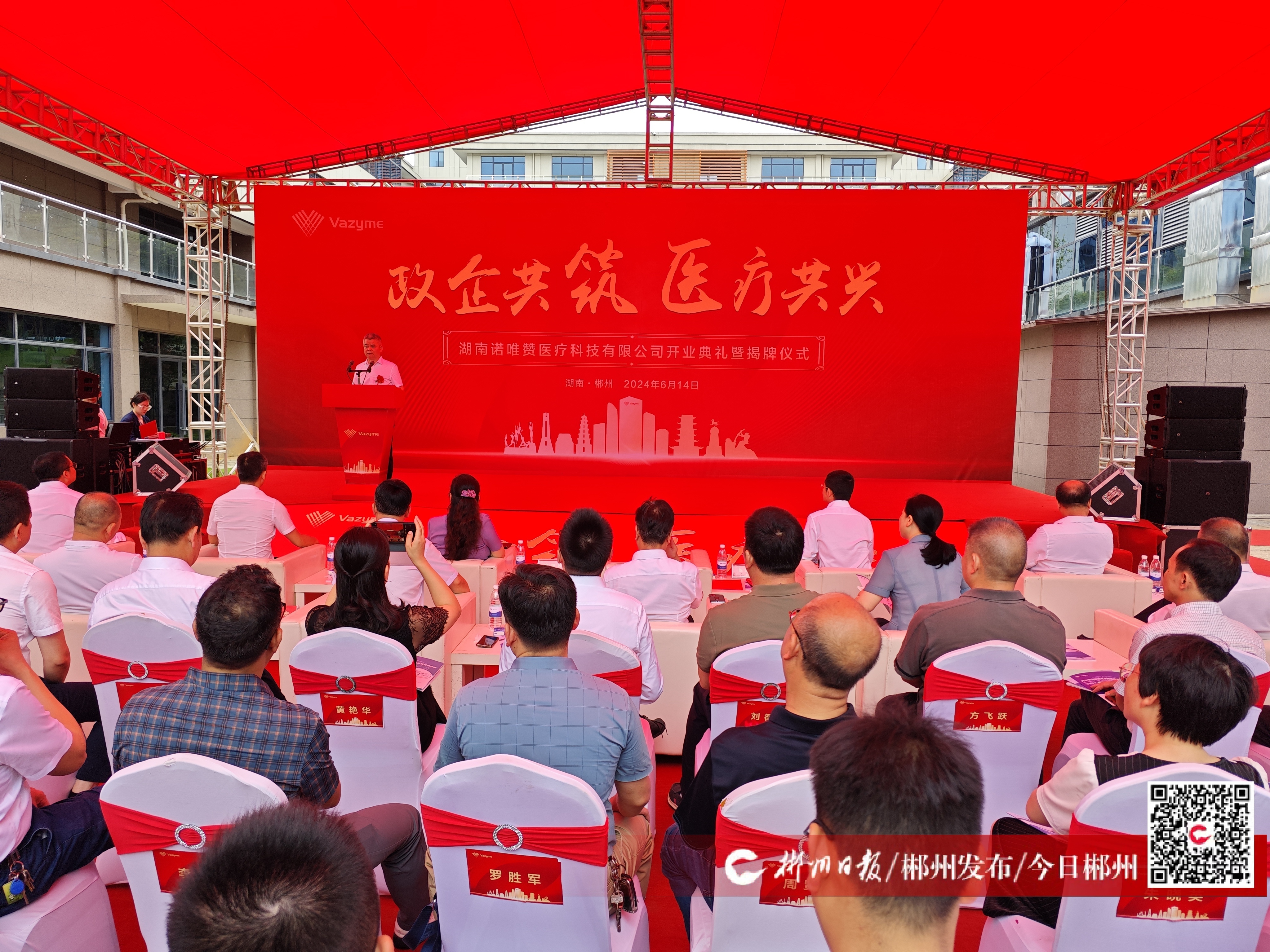 6月14日,湖南諾唯贊醫(yī)療科技有限公司開業(yè)典禮暨揭牌儀式在郴州經(jīng)開區(qū)大健康產(chǎn)業(yè)園舉行。該公司成功開業(yè)既標志著全市招商引資工作取得了新的重大成果,又昭示著我市生物醫(yī)藥產(chǎn)業(yè)從無到有、由小到大、由弱到強,迎來了新的光明前景。市政協(xié)主席陳躍文出席活動并致辭。