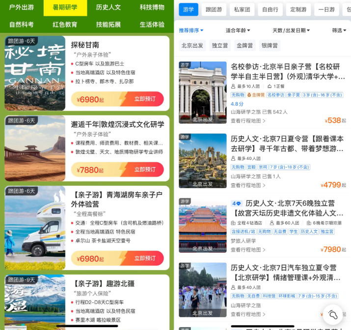 暑假來臨,各式研學旅行項目受到消費者青睞。