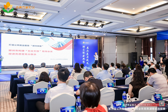 在頒獎(jiǎng)儀式上,郴州市人社局現(xiàn)場(chǎng)展示了《郴州市構(gòu)建“五化五聯(lián)”服務(wù)體系促進(jìn)高質(zhì)量充分就業(yè)》項(xiàng)目。