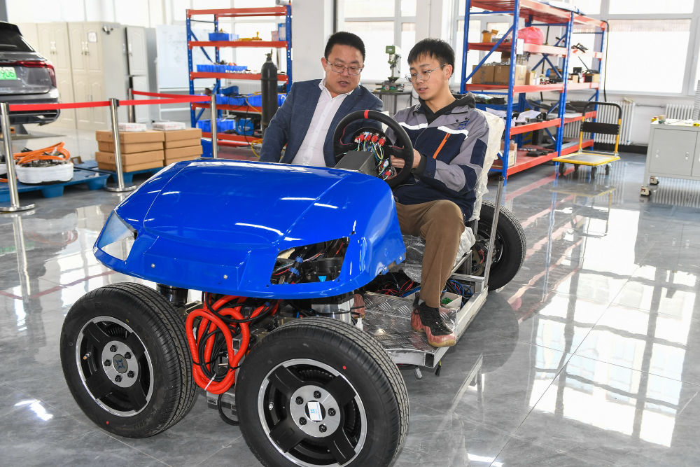 2024年3月13日,在吉林長春一家汽車科技企業(yè),吉林大學(xué)汽車工程學(xué)院教授靳立強(qiáng)(左)試乘智能底盤樣車。2023年,長春市科技局和吉林大學(xué)共建吉林大學(xué)概念驗(yàn)證中心,一手對(duì)接高校,一手對(duì)接企業(yè),確保科研成果在技術(shù)路線和商業(yè)模式上的可行性,實(shí)現(xiàn)“從0到1”的轉(zhuǎn)化。