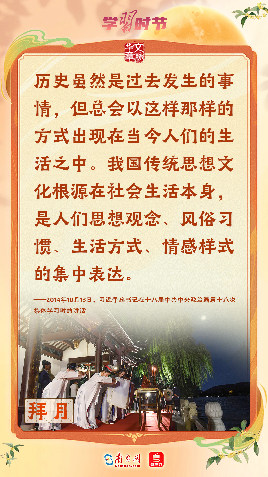 品月餅、賞月拜月、看花燈、飲桂花酒……作為我國重要的傳統(tǒng)節(jié)日,中秋節(jié)蘊含著中華優(yōu)秀傳統(tǒng)文化的精髓。習近平總書記一直以來高度重視傳統(tǒng)節(jié)日和傳統(tǒng)文化,曾多次強調(diào)要發(fā)揮其寶貴價值和獨特作用。