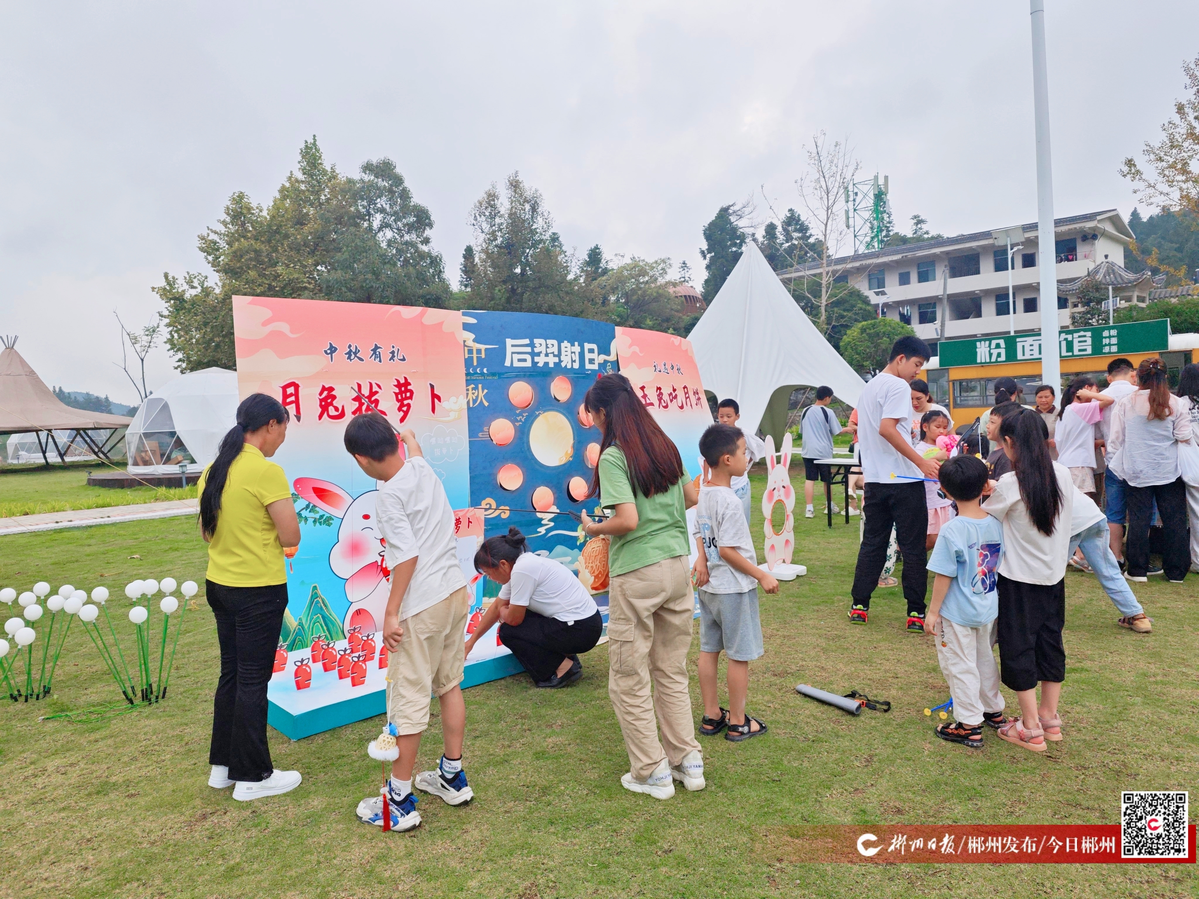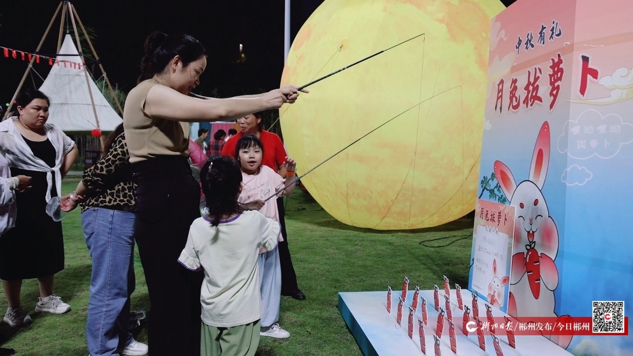 活動(dòng)設(shè)置了后羿射月、投壺射箭、月兔吃月餅、月兔拔蘿卜、燈籠團(tuán)扇DIY等一系列親子互動(dòng)趣味小游戲,吸引游客參與其中,激發(fā)著大家對(duì)傳統(tǒng)文化的熱愛(ài)與傳承。