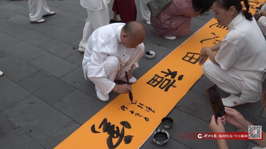 活動(dòng)現(xiàn)場(chǎng)還鋪起了一條數(shù)十米長(zhǎng)的書法長(zhǎng)卷,書法愛好者紛紛留下“步月登云”“月賞中秋”等應(yīng)景中秋的吉祥墨寶。古韻十足的書法展示吸引了不少居民、游客駐足圍觀,近距離感受傳統(tǒng)文化的魅力。