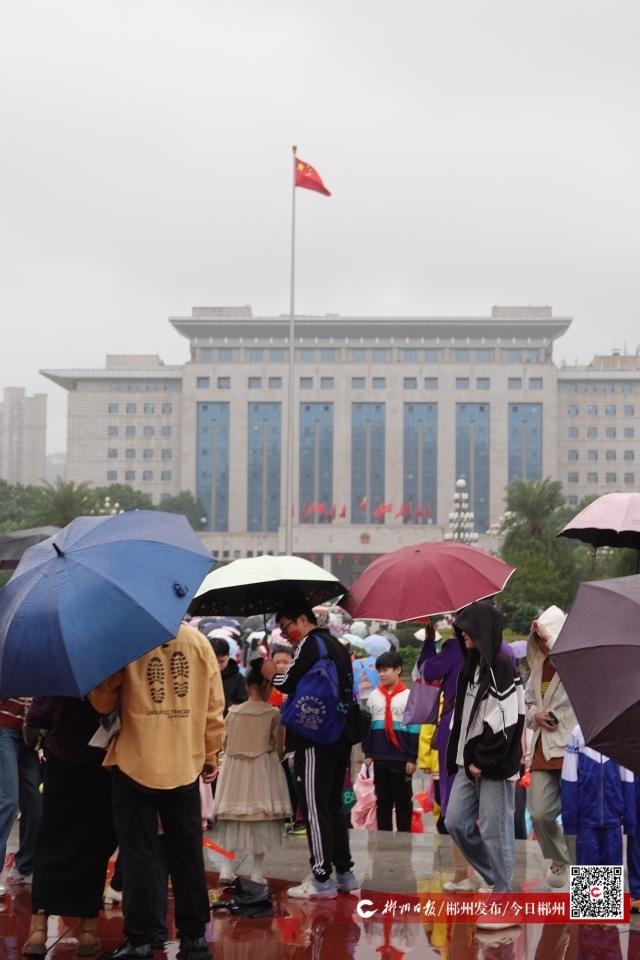 早晨8時(shí)許,天空雖下著小雨,五嶺廣場(chǎng)上卻熱鬧非凡,不少市民冒雨來到現(xiàn)場(chǎng),揮舞著手中的國旗,期待共同見證五星紅旗冉冉升起的莊嚴(yán)時(shí)刻。升旗儀式結(jié)束后,仍有不少市民留在廣場(chǎng)上與國旗合影,表達(dá)對(duì)祖國真摯的祝福。
