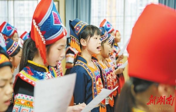 ▲廣西壯族自治區(qū)河池市宜州區(qū)第一小學(xué)學(xué)生在學(xué)唱山歌。