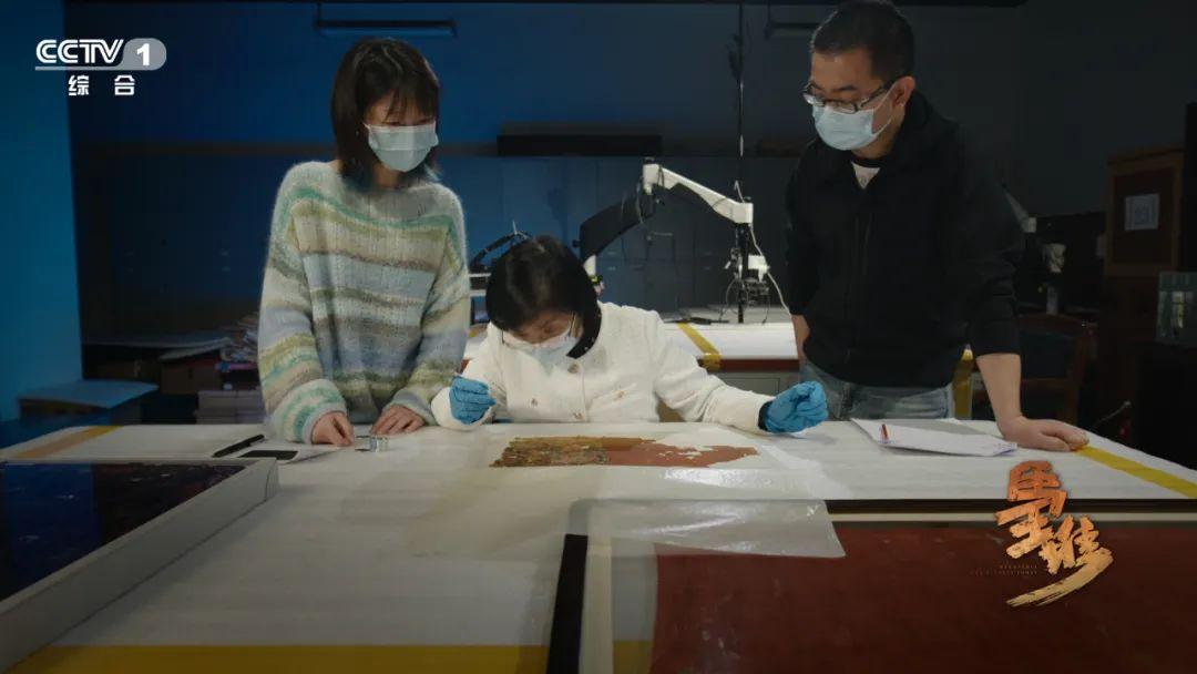 △湖南博物院文物專家研究絲織品紋樣