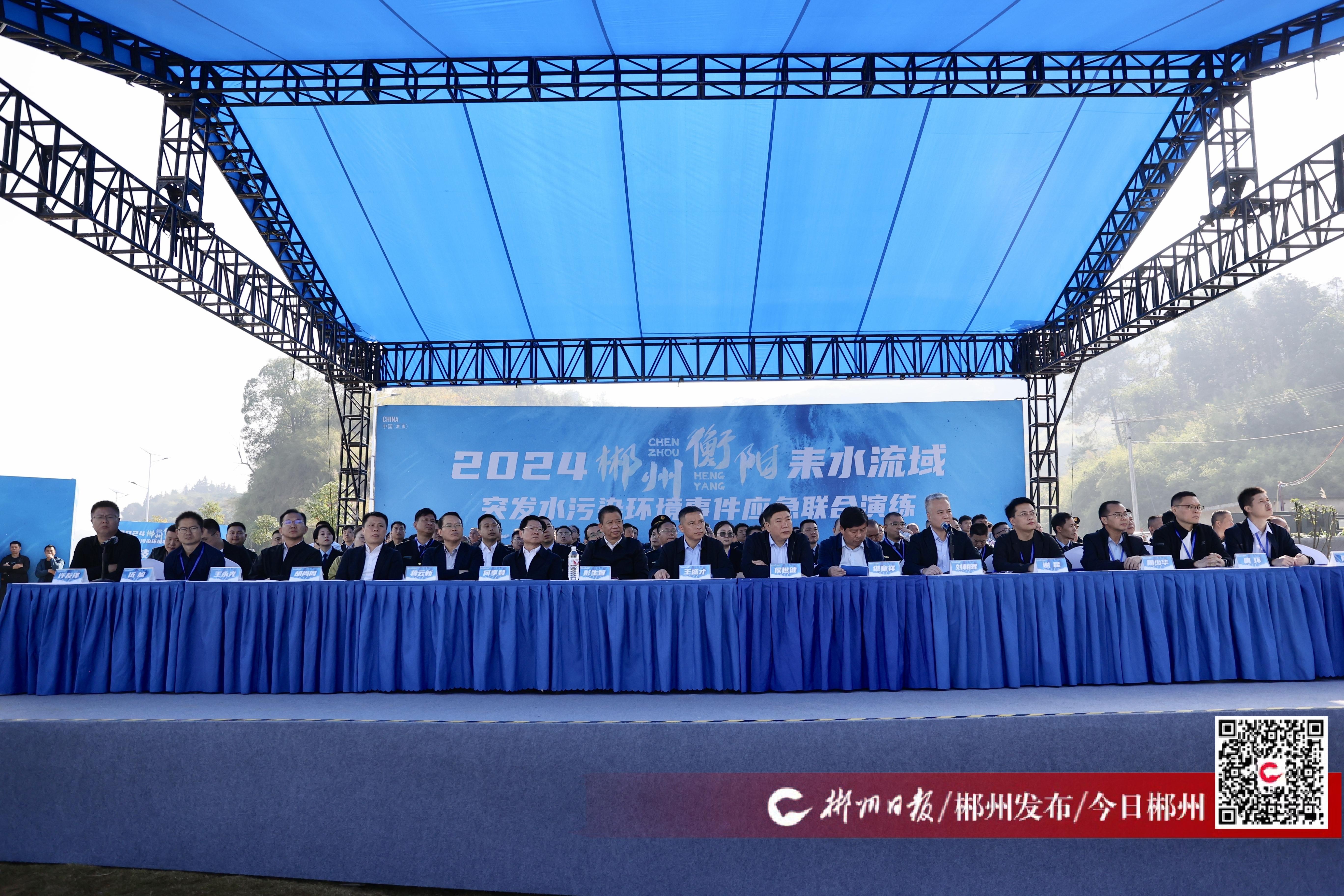 11月12日,2024年郴州——衡陽(yáng)耒水流域突發(fā)水污染環(huán)境事件聯(lián)合應(yīng)急演練在永興縣一級(jí)水電站攔河閘壩舉行。湖南省生態(tài)環(huán)境廳黨組成員、副廳長(zhǎng)王盛才,郴州市委常委、副市長(zhǎng)彭生智出席活動(dòng),生態(tài)環(huán)境部應(yīng)急中心綜合處處長(zhǎng)侯世健到場(chǎng)觀摩指導(dǎo)。