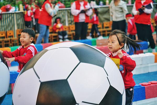 看充滿(mǎn)創(chuàng)意的團(tuán)體操賽正在如火如荼進(jìn)行,萌萌噠“足球娃”、氣宇軒昂“七彩娃”、神采奕奕“棒棒娃”、口號(hào)響亮“加油娃”、一板一眼“戲曲娃”、天地龍鱗“中國(guó)娃”……每個(gè)方陣的娃娃都從容不迫跟隨節(jié)奏展示體操動(dòng)作,展現(xiàn)活力滿(mǎn)滿(mǎn)、斗志昂揚(yáng)的團(tuán)隊(duì)精神。