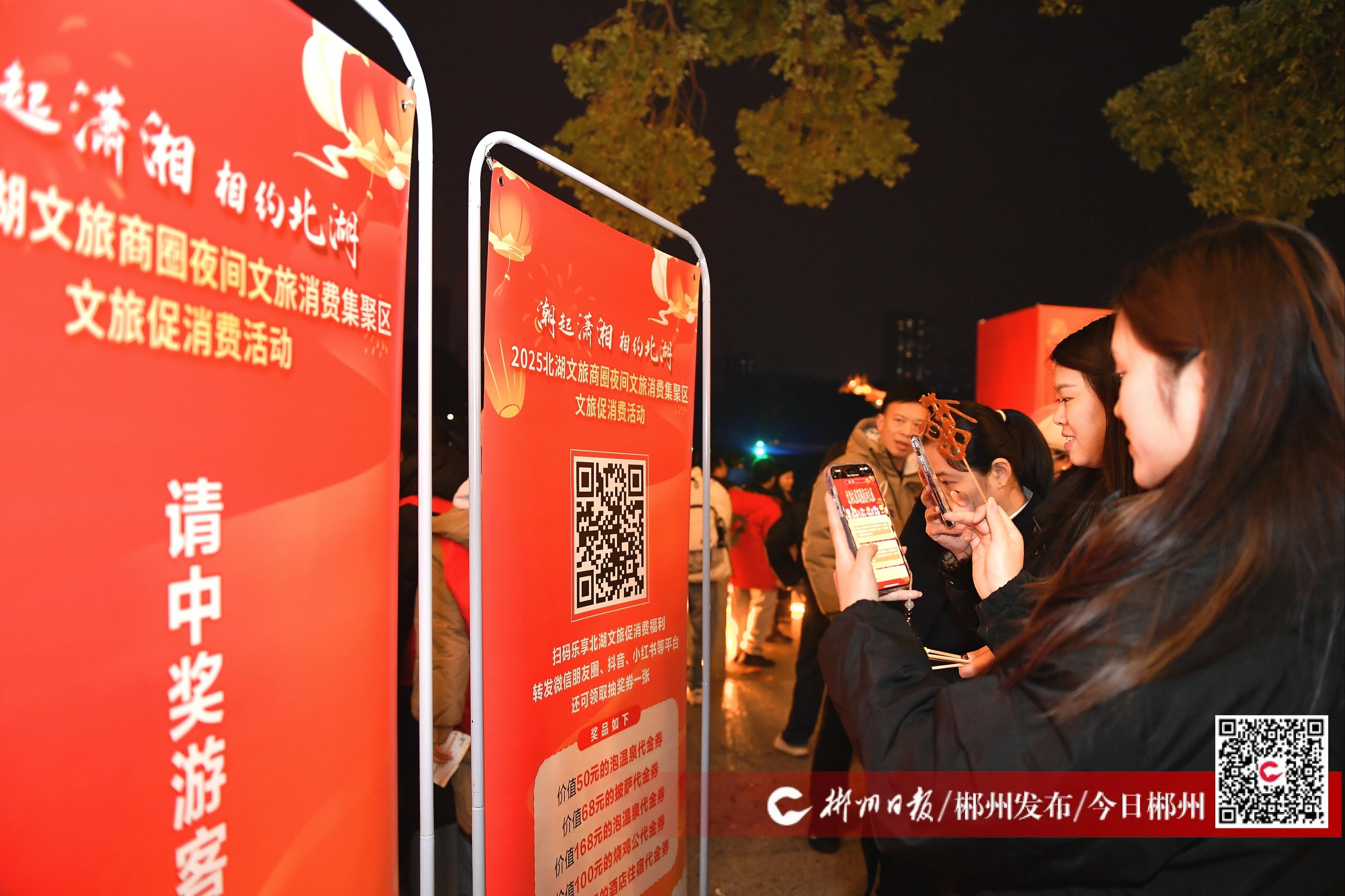 市民在水月洲拍攝相片、掃碼,并轉(zhuǎn)發(fā)朋友圈、抖音、微博、小紅書等社交平臺(tái),即可獲得抽獎(jiǎng)資格。市民有機(jī)會(huì)獲得“免費(fèi)吃雞劵”“免費(fèi)吃餅券”“免費(fèi)泡溫泉券”“免費(fèi)住酒店券”,讓北湖文旅消費(fèi)“火”起來,帶動(dòng)北湖消費(fèi)人氣持續(xù)“聚”起來,北湖經(jīng)濟(jì)發(fā)展持續(xù)“旺”起來。