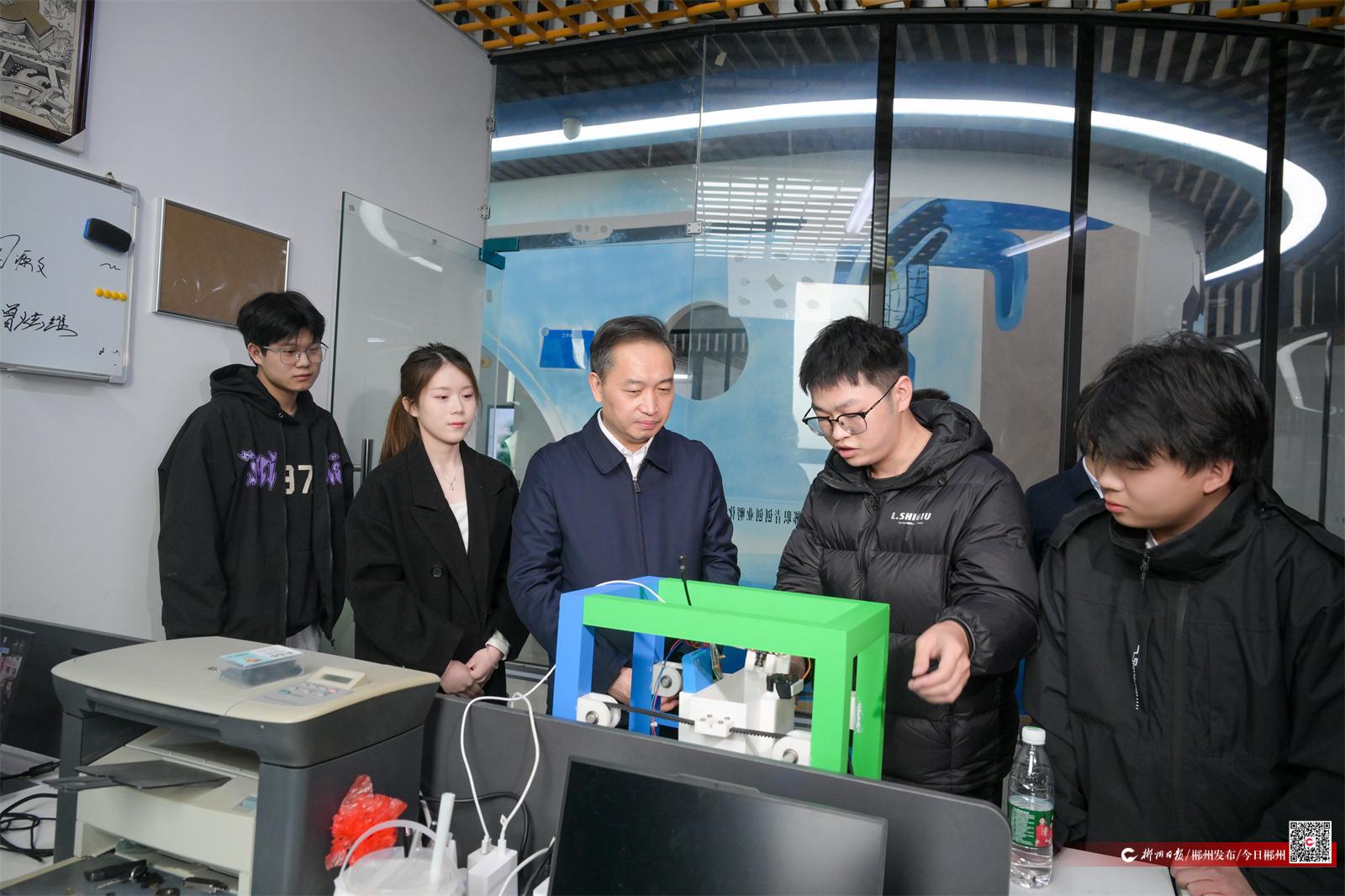 來到湘南學(xué)院大學(xué)生創(chuàng)業(yè)園、郴州職業(yè)技術(shù)學(xué)院大學(xué)生創(chuàng)新創(chuàng)業(yè)孵化基地和郴江實驗室新能源電池材料研究中心,吳巨培詳細(xì)了解大學(xué)生創(chuàng)業(yè)就業(yè)指導(dǎo)、創(chuàng)新研究、成果轉(zhuǎn)化、市場合作等情況,與大學(xué)生創(chuàng)業(yè)團(tuán)隊親切交流,對大家積極踴躍投身創(chuàng)業(yè)實踐給予充分肯定。他指出,要深入學(xué)習(xí)貫徹黨的二十屆三中全會、中央經(jīng)濟(jì)工作會議、全國兩會精神以及習(xí)近平總書記關(guān)于做好高校畢業(yè)生等青年群體就業(yè)創(chuàng)業(yè)工作的重要指示精神,落細(xì)落實湖南省支持大學(xué)生創(chuàng)業(yè)“七個一”舉措,更好地推動大學(xué)生創(chuàng)新創(chuàng)業(yè)和高質(zhì)量充分就業(yè)。要緊密對接郴州產(chǎn)業(yè)需求,科學(xué)設(shè)置高校學(xué)科專業(yè),建強(qiáng)創(chuàng)業(yè)導(dǎo)師隊伍,推動產(chǎn)教深度融合。要堅持以科技創(chuàng)新引領(lǐng)產(chǎn)業(yè)創(chuàng)新,加強(qiáng)科技創(chuàng)新和成果轉(zhuǎn)化,加快發(fā)展新質(zhì)生產(chǎn)力。要充分發(fā)揮大學(xué)生創(chuàng)新創(chuàng)業(yè)平臺孵化作用,鼓勵探索創(chuàng)新精神,致力于發(fā)現(xiàn)“種子”、培育“苗子”、挖掘“尖子”,更好服務(wù)郴州高質(zhì)量發(fā)展。