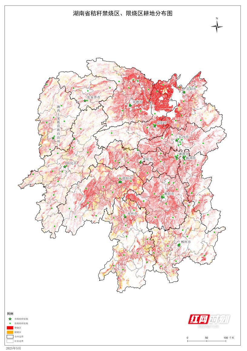 ▲湖南省秸稈禁燒區(qū)和限燒區(qū)分布圖。圖/湖南省生態(tài)環(huán)境廳