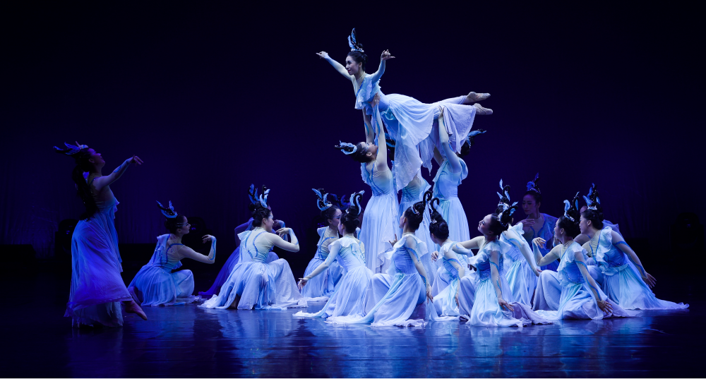 郴州市歌舞劇團(tuán)的原創(chuàng)舞蹈《煙波之上》以郴州東江湖的霧漫奇觀為靈感,融合當(dāng)?shù)厮滴幕?、民俗風(fēng)情及地理特征創(chuàng)作而成,并將舞蹈與現(xiàn)代光影技術(shù)巧妙結(jié)合。舞者們身著輕紗,以曼妙的舞姿演繹霧靄氤氳的湖光山色,將水的靈動(dòng)、神秘與詩意展現(xiàn)得淋漓盡致。該作品不僅呈現(xiàn)了郴州綠水青山的生態(tài)之美,更通過“霧鎖江面,心向光明”的意象,傳遞出對(duì)生態(tài)文明的深情禮贊。